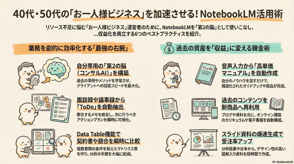 40代50代お一人様ビジネスの士業・講師・コンサルのためのNotebookLM活用法ベスト10@Gemini×NotebookLMで実践