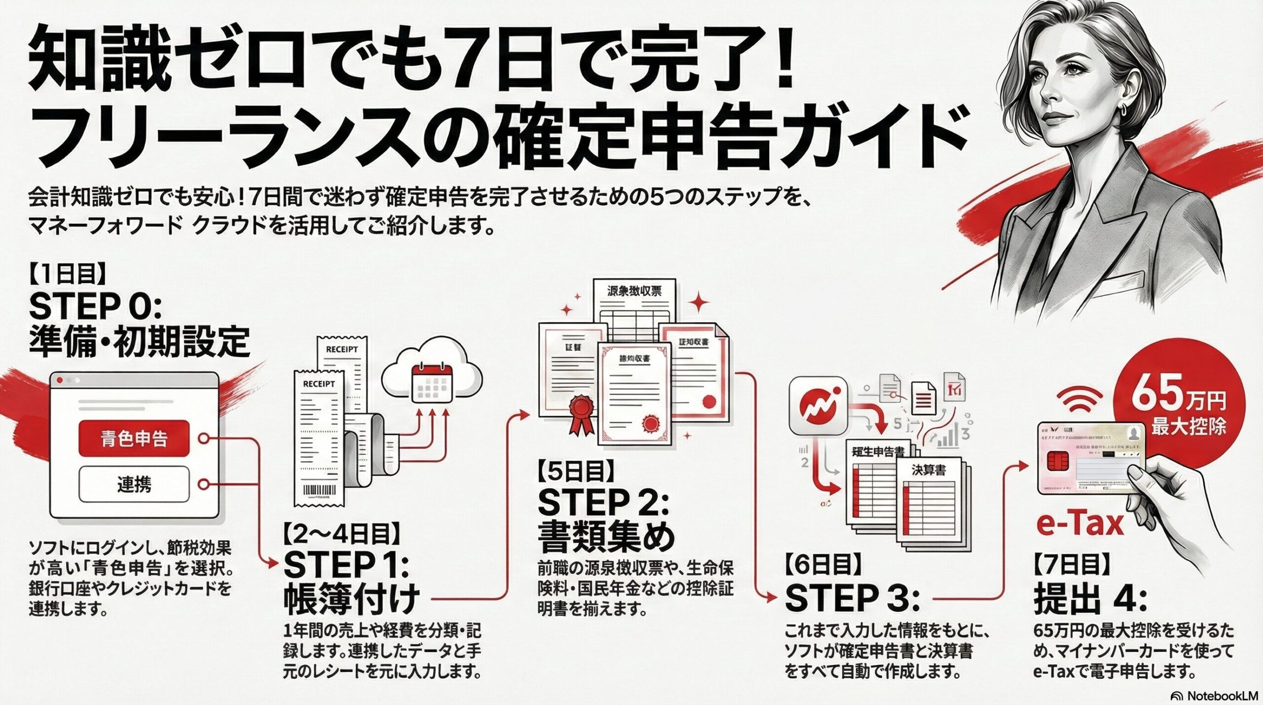 すると、Geminiさんはサクッと秒でステップを作ってくれます。でも…確定申告のそれを理解するのは、いうてよーわからんわけです。初めてとか2回目とかなら尚更です(私、未だによく分かってへん)。