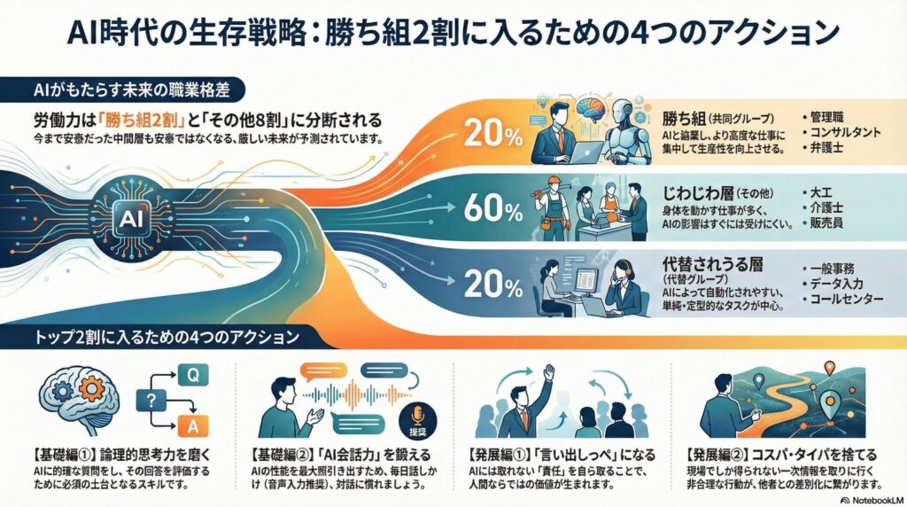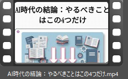 私は、早速2倍速で全視聴しました。結論は「 総論! 」です。AI関連のビジネス書15冊以上、その他レポートを読破されているということは、つまり「 偏った意見にならない 」「 多くの人が同じことを言っている 」という結論です。を、私たちに変わって「 たった49分に 」まとめてくださっています!ので、超コスパタイパが良い動画です。よ!