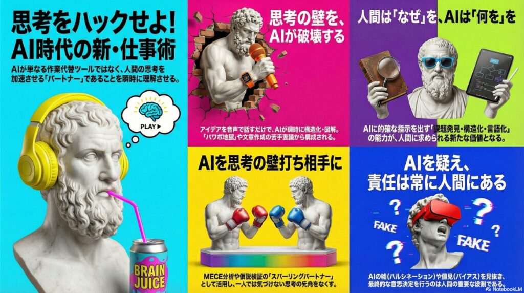 (↓)NotebookLMもデザインプロンプトを変えることで、同じ原稿(ソース)でも、これだけデザインテイストが変わる(変えられる)件