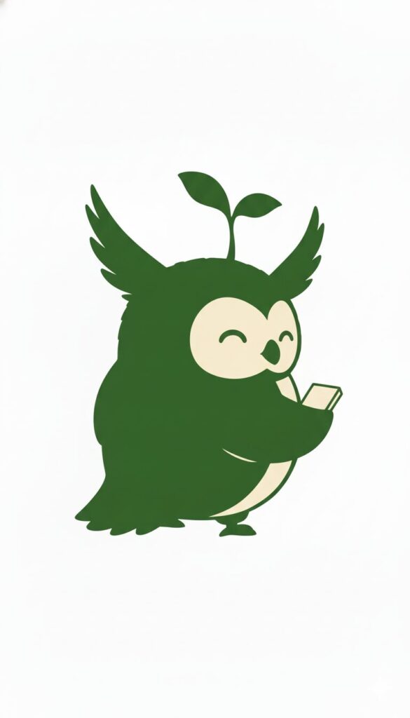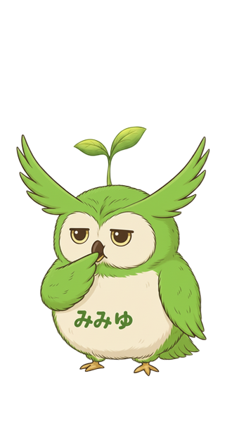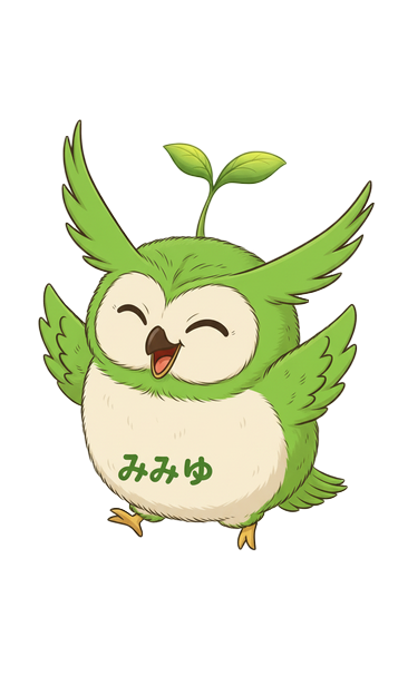 - 姿形: 全体的に丸みを帯びたフォルムで、頭には大きな耳(聴覚の象徴)。普段は目を細めて穏やかに話を聞いているが、興味深い話には目を大きく見開く。フワフワの体毛で、相手を包み込むような温かさを表現。頭には「 ぐんっ! 」と芽吹く双葉が描かれている。