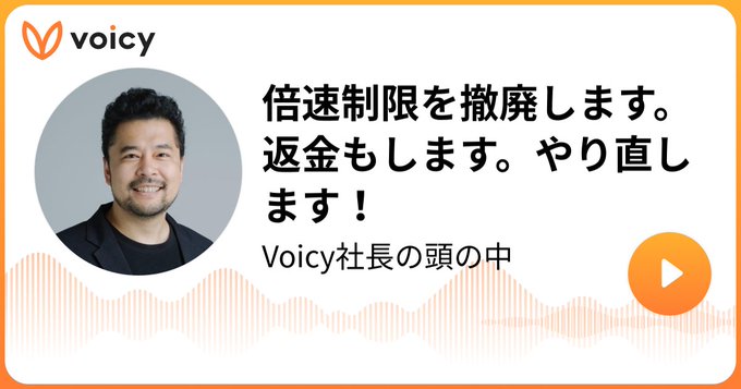 いやぁ…この一週間ことの成り行きを追いかけてきました。Voicy社長自身の対応(Xでの発言)が、特にインフルエンサー(Voicy配信者側)を再炎上させ、制限撤廃という火消しの決断に至った感がします。フォロワーを抱えるインフルエンサーがVoicyから離れたら大変ですからね…。