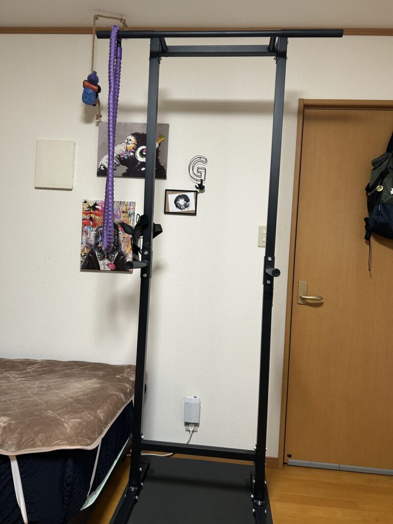 サブスク会員になって毎月支払い続ける必要無し!天気に左右されへん!で、何よりお一人様リモートワーカーは座りっぱなしという超~不健康!30分以上の座りっぱな喫煙レベルに不健康と言うじゃありませんか!!!ってことで、立ち上がったときにぶら下がれるってなけ手軽さも最高!!!