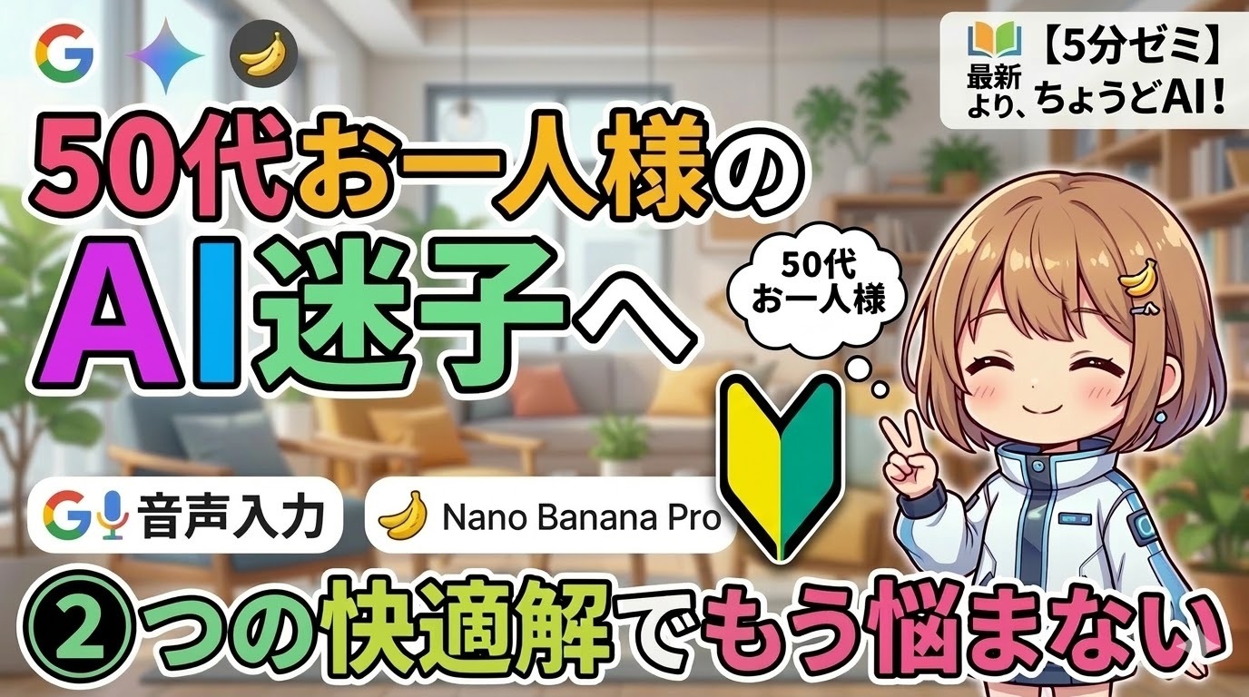 50歳お一人様の「 AI置いてきぼり感 」は使うAIで解決!Gemini「 ❶音声入力&❷画像生成 」小さな成功体験という魔法