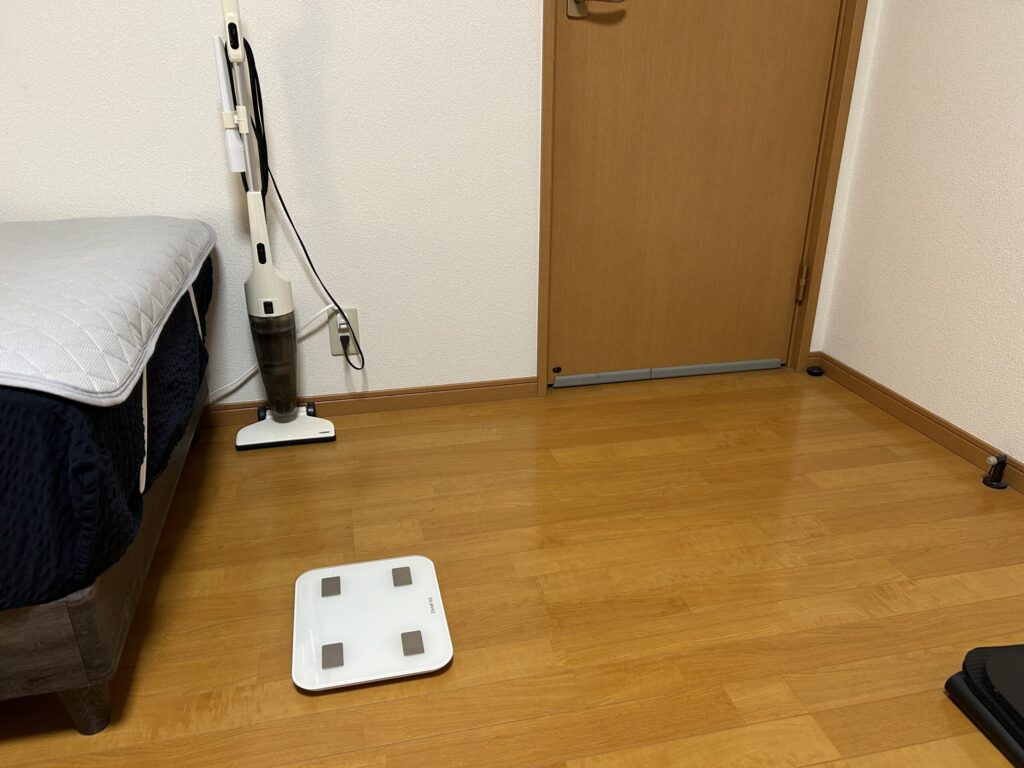 です。で、自分の部屋に設置してください。脱衣所ではありません。で、毎日、複数回乗り続けてください。これだけです。私、コロナ禍からかれこれ5年くらい続けている積立NISA型投資です。毎日乗り続けているから、食べ過ぎた後とか、運動した後とか、100g単位でだいたいの体重変動が分かるようになります。