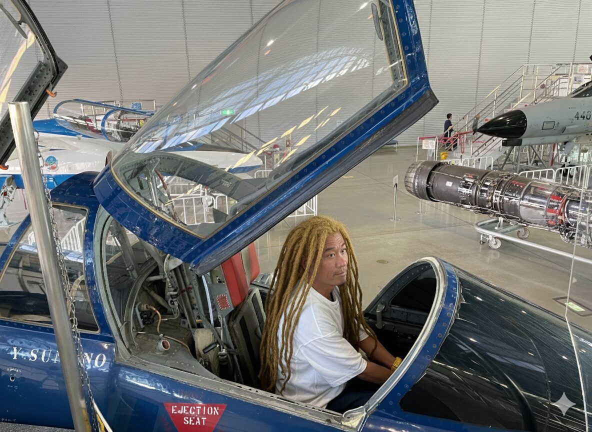 画像 1で金髪の ドレッドヘアーをした人物に画像2の パイロットの服を着せてください