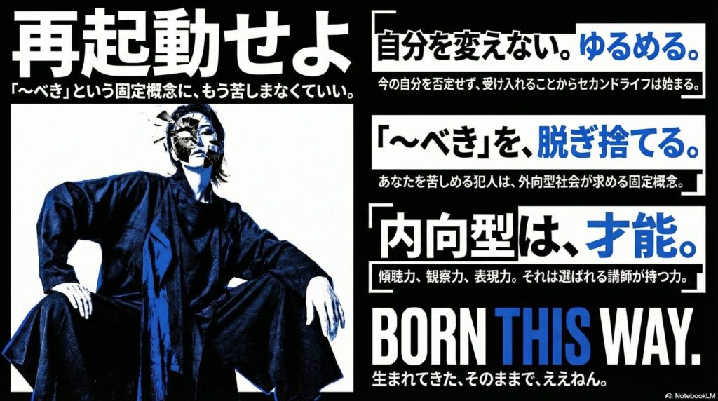 なんでやねん!で、あなたのプレゼンを劇的に変えます。私はプレゼン研究者ではありません。数千回の実践を繰り返してきた実践者です。アホみたいな数のプレゼンを実践し続けたことで「 世の中の成功法則は外向型向きで、内向型では使いづらい 」ことに気づけました。内向型の私があなたの代わりに「 使えるノウハウ使えないノウハウ 」の仕分け作業は終わらせておきました。私が実践で学んだ最も重要な結論は「 人間性を高めること 」です。人間を知り、やさしい人間になることです。シンプル思考・本質・論点をリアルな人間心理に基づいて、実践で成果が出るプレゼン術&メタ思考を綴ります。「 講座 」「 著書 」「 ブログ 」「 音声 」で、何度も何度も何度も、復習・学び直しを続けていただけるように、同じことを100万回発信し続けます😁
